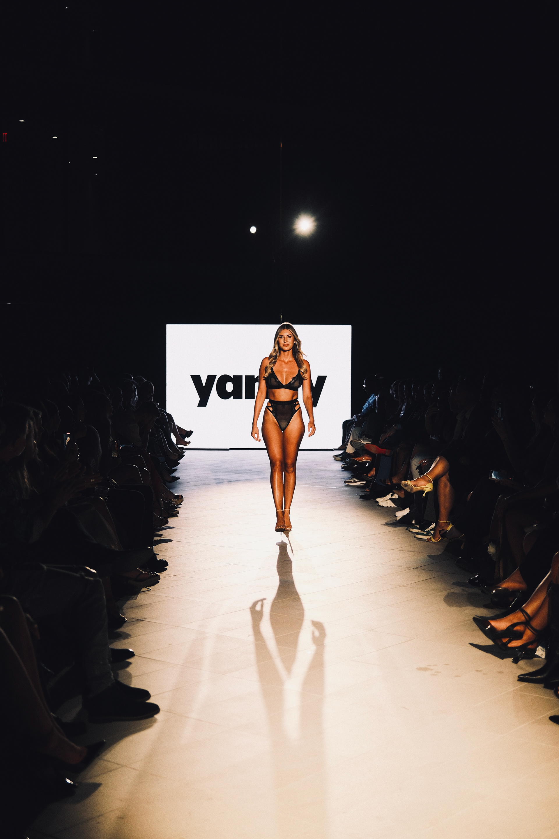 Runway coverage capturing a luxury evening of swimwear and intimate apparel, focusing on atmosphere, movement, and the energy of a high-fashion presentation.