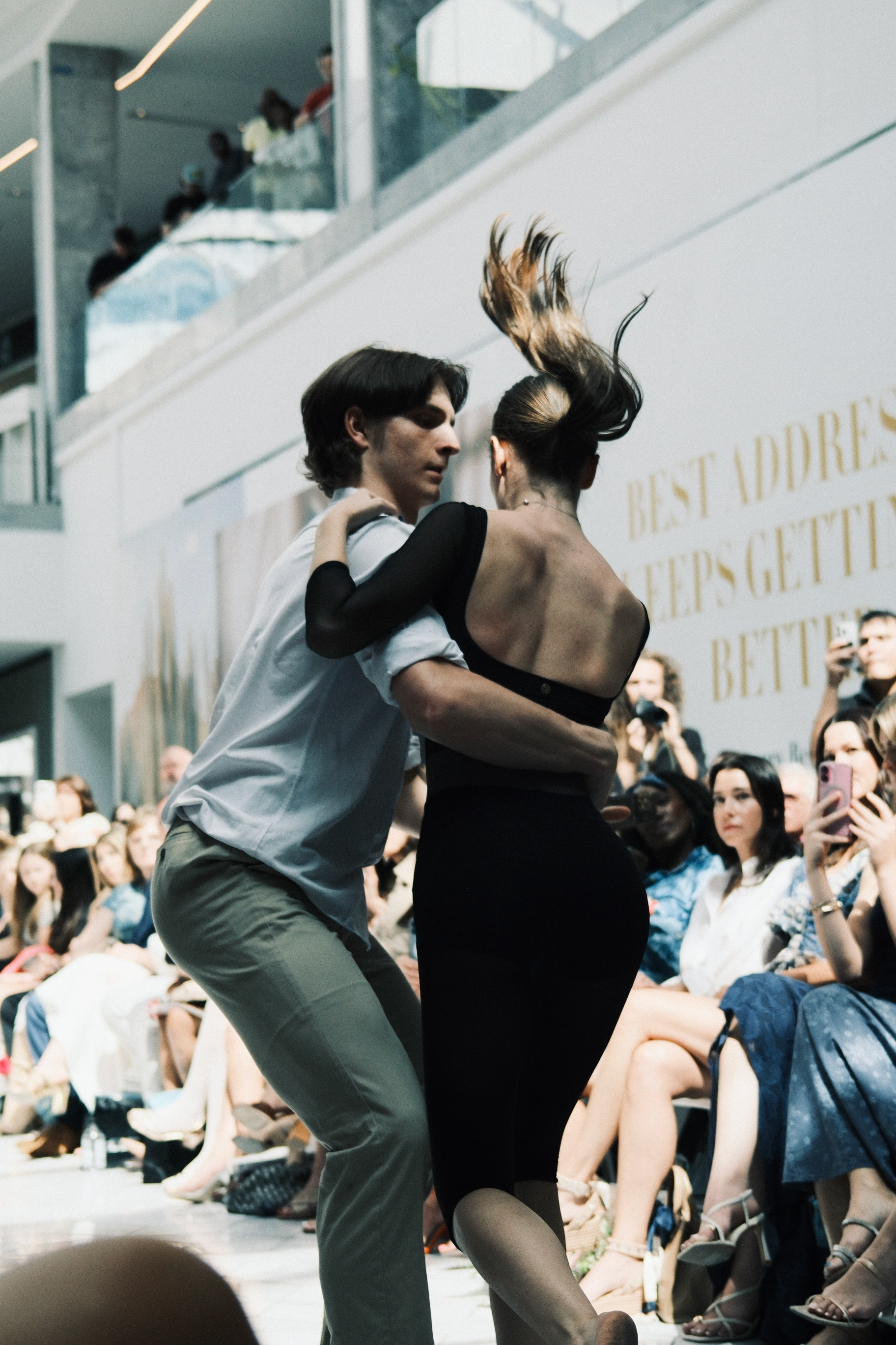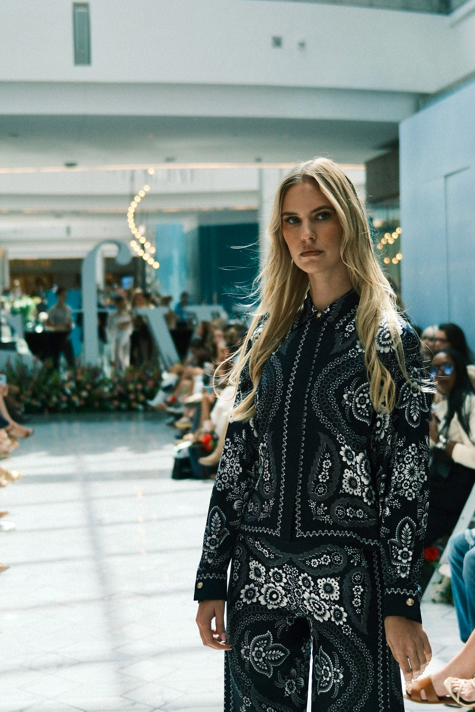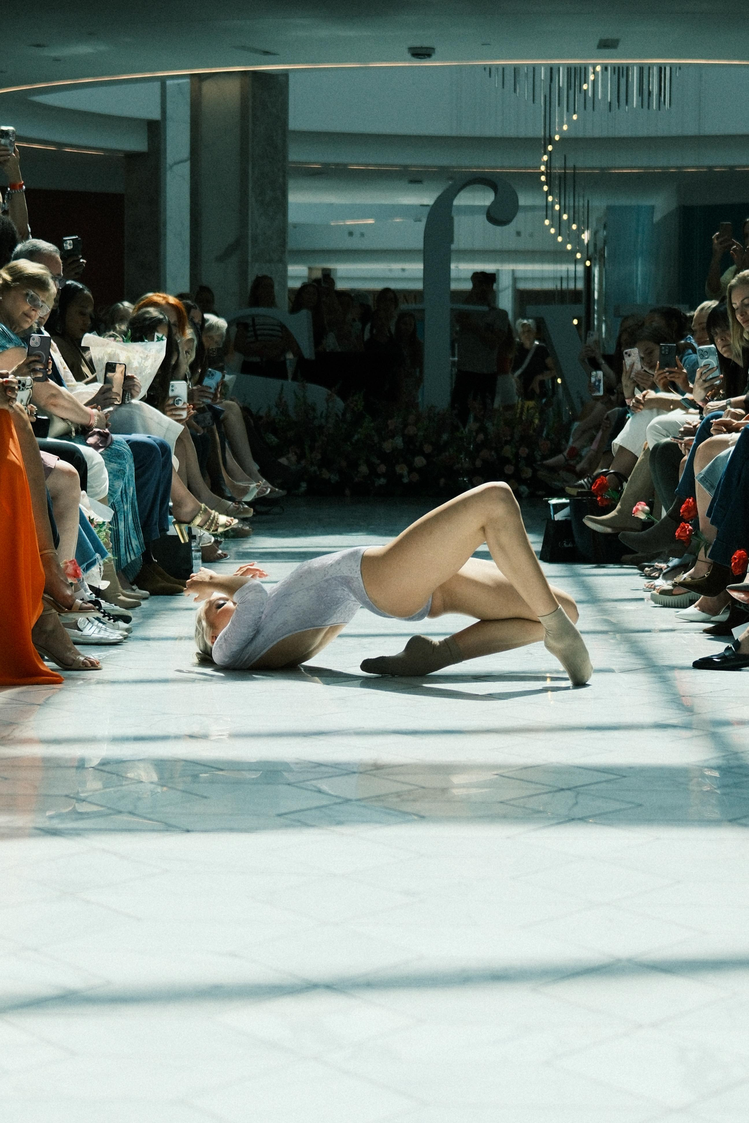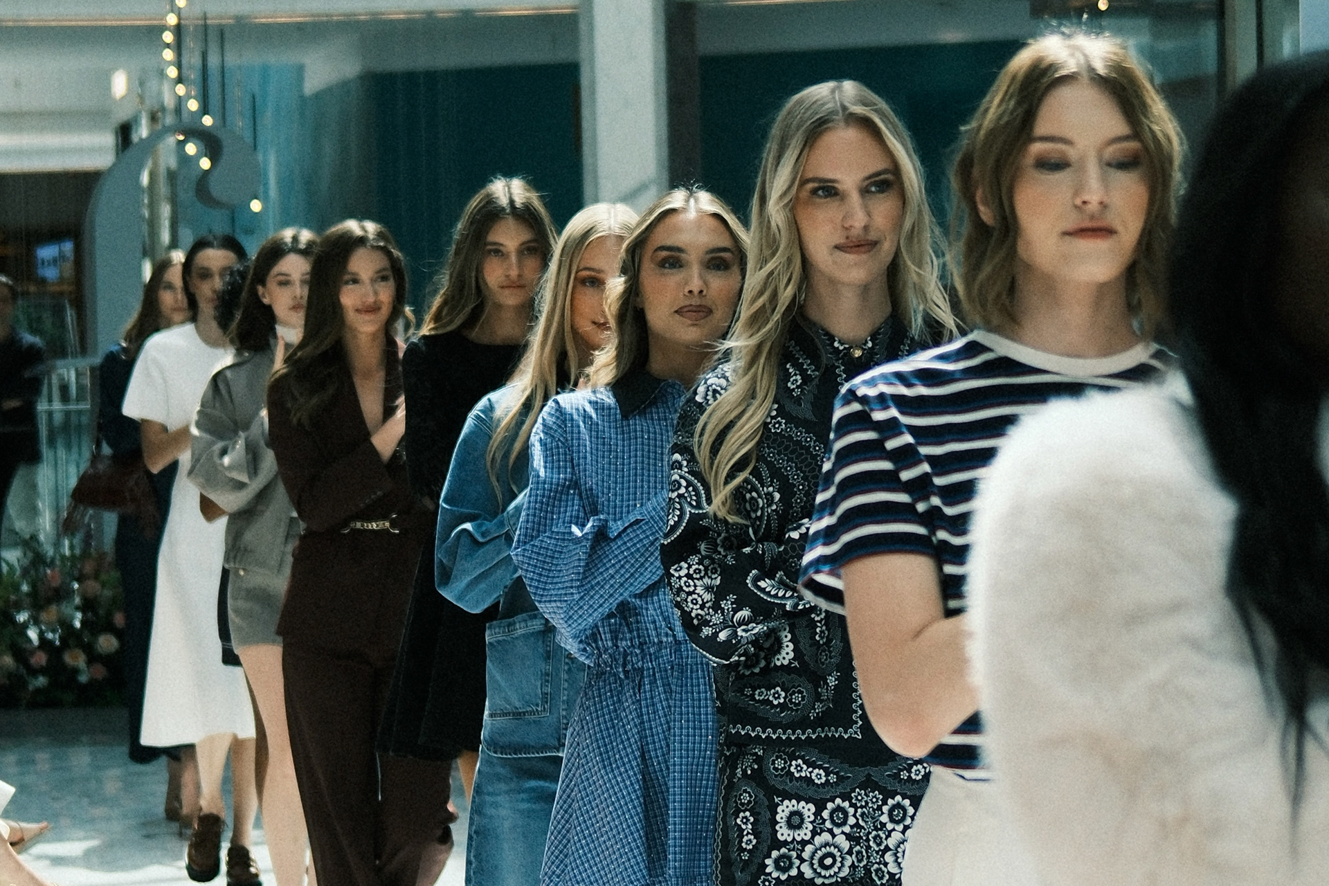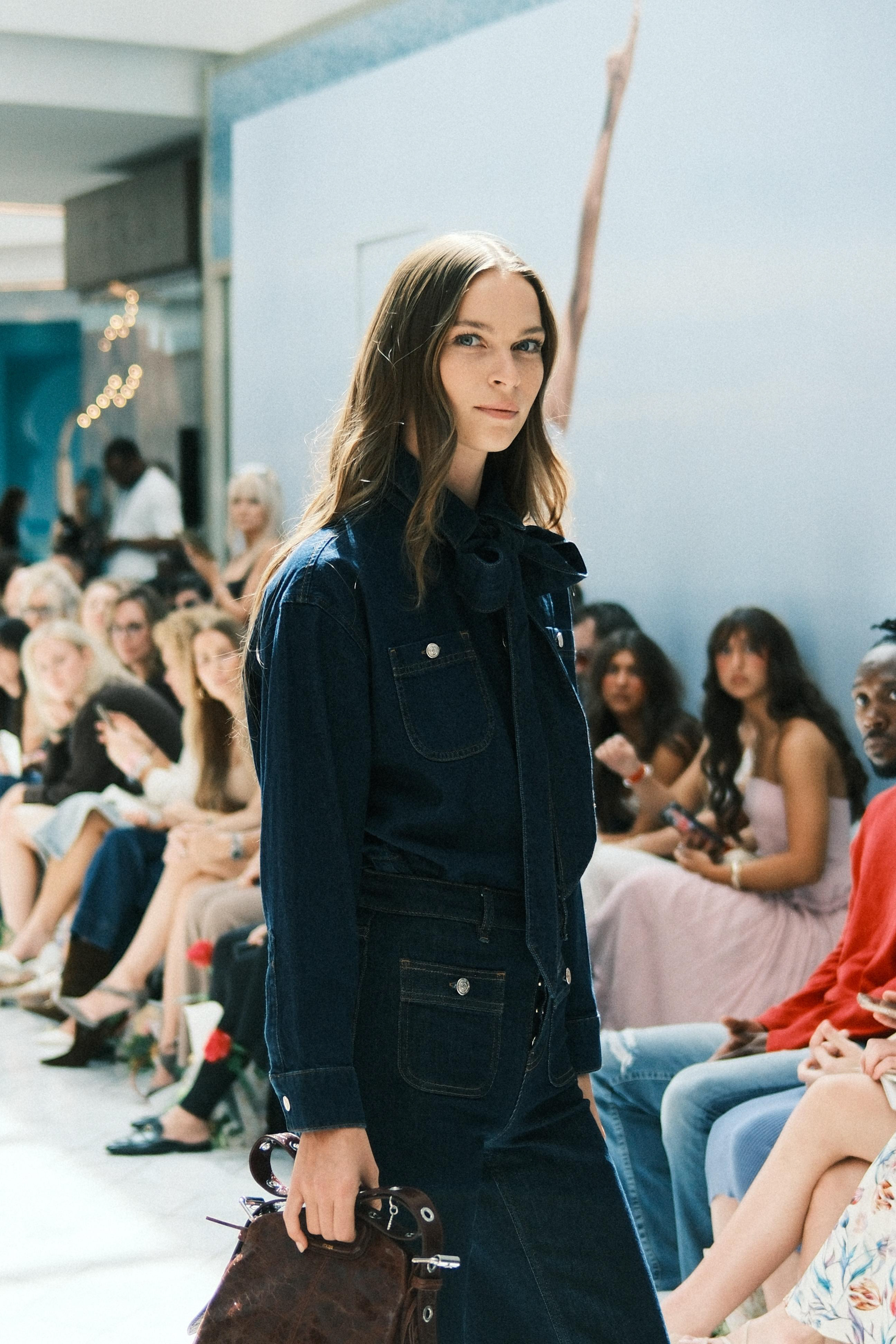 Runway imagery edited with a moody, soft palette to emphasize the ethereal tone and atmosphere of a contemporary fashion presentation.