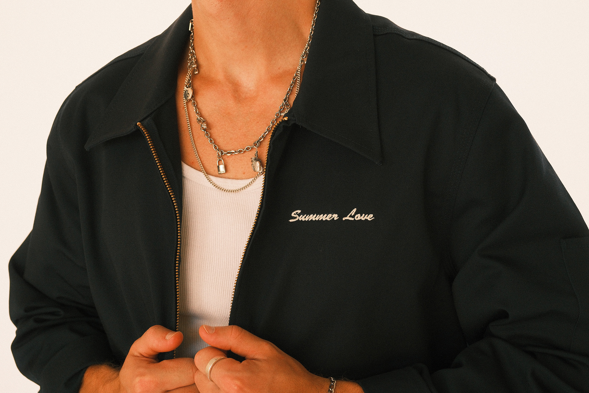 Product-focused visual set created for a music-inspired apparel drop, blending embroidery detail with lifestyle-driven storytelling.